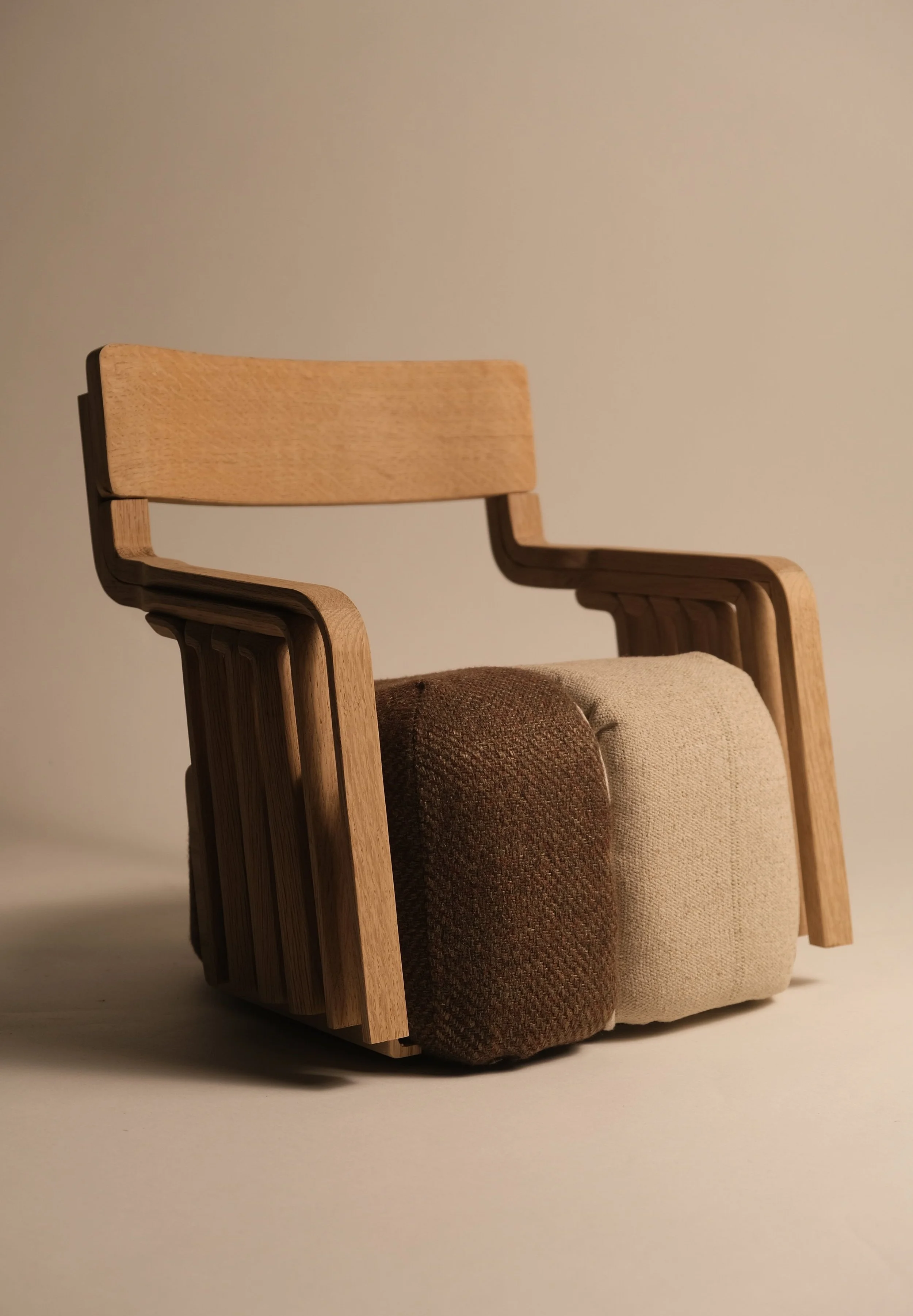 nroc features a slatted side assembly that flows into the backrest, creating a cornrow-esque armrest. Its chamfer detail contributes to the flow and emphasizes the joining of each βrowβ. The field-inspired seat is broken into three sections, creating a unique cushion made of earth-toned fabrics. With its rotating base design, it creates a relaxing armchair built for conversation, connecting, and leisure.
